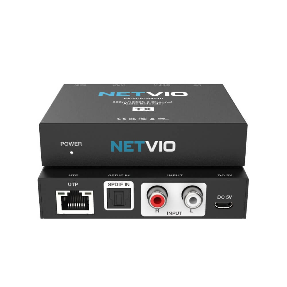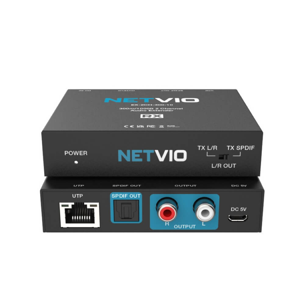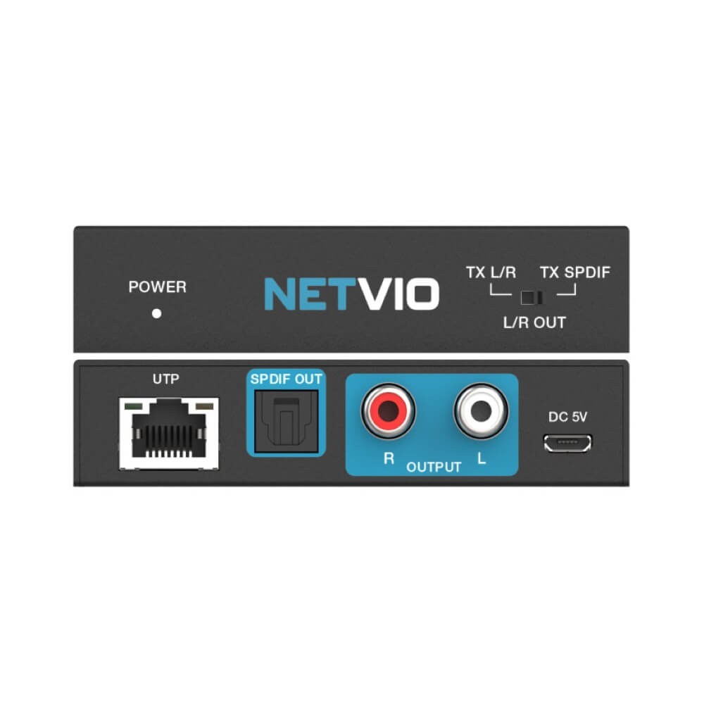 The Netvio Analog & Digital Audio Extender is a high-performance extension kit designed for long-distance audio transmission over Cat6/6A cabling. Supporting distances up to 300m, it delivers uncompressed, full-range stereo (2ch) analog audio or TOSlink Digital 5.1 audio with absolute clarity and reliability, thanks to its ultra-low jitter design, ensuring clean, accurate sound over long distances.