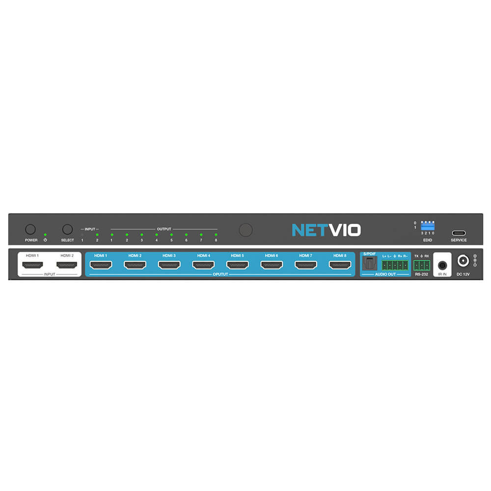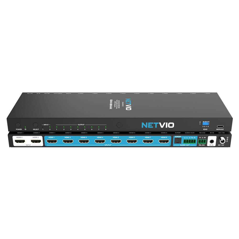 Netvio’s 2×8 48Gbps HDMI 2.1 Splitter (& switcher) is designed for ultra-high-definition AV distribution in corporate, education, retail, broadcast, and residential environments.